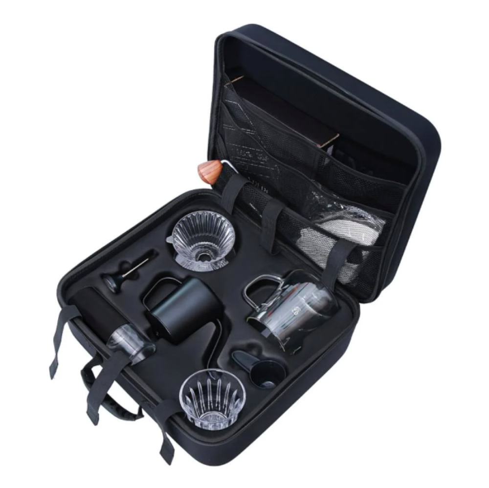 - توفر لك شنطة أدوات V60 XPERT تجربة قهوة متكاملة بفضل احتوائها على 9 قطع أساسية، وهو مايضمن أنك تمتلك كل ما تحتاجه لتحضير قهوة مقطرة مثالية في أي مكان.