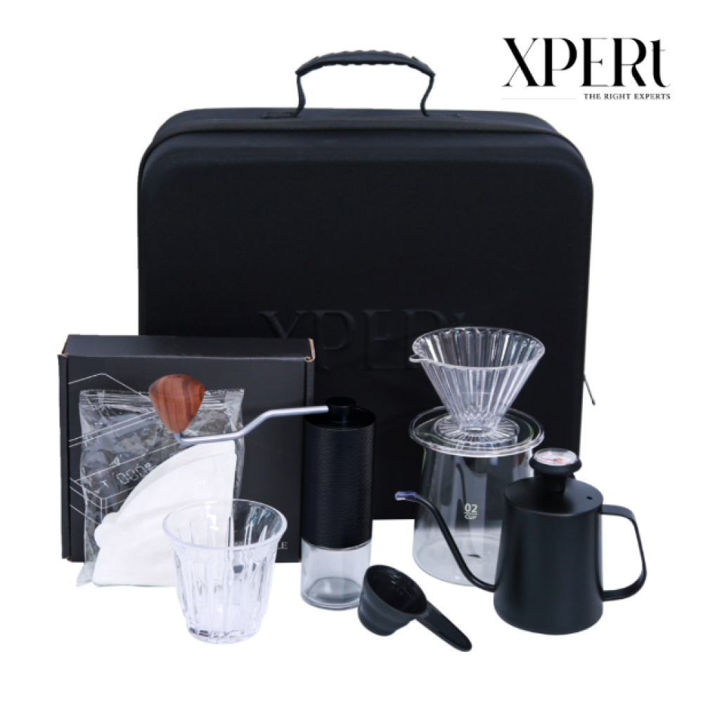 - شنطة ادوات v60 من XPERT تقدم لك كل الأدوات اللازمة لتحضير قهوة مقطرة بمذاق استثنائي في أي وقت وأي مكان.