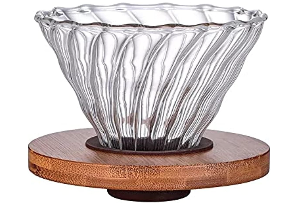 قمع v60 زجاجي مموج قاعدة خشب 02