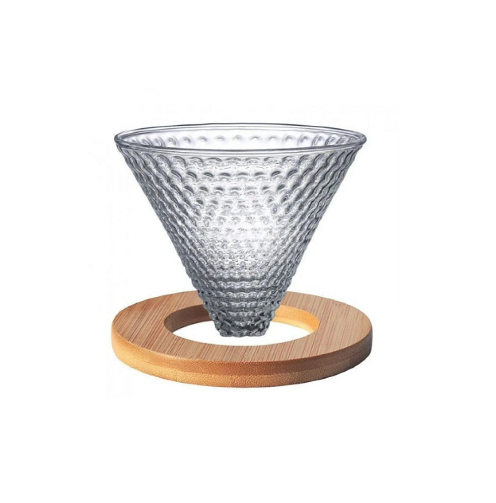 قمع v60 زجاجي 02 بقاعدة خشب منقط
